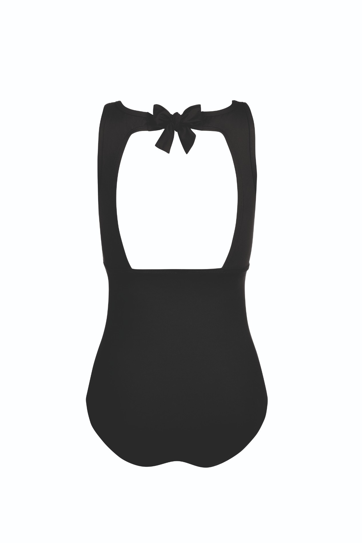 - Peldkostīma aizmugurē ir sievišķīga, sasienama bantīte